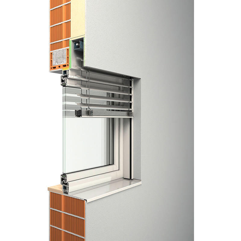 Sie wollen alle Vorteile eines Vorbausystems und die eines klassischen Fassadenraffstores gleichzeitig?